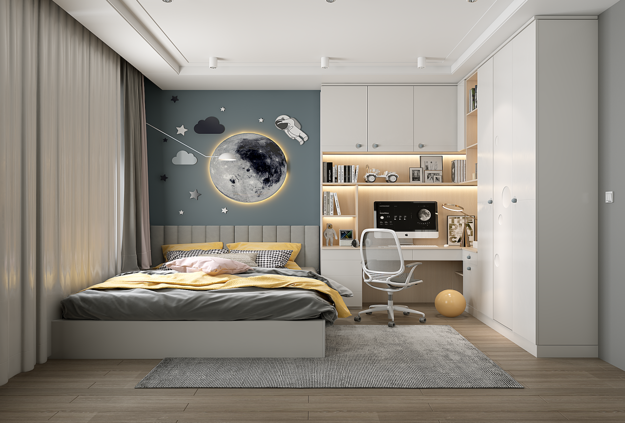 初步规划空间的时候,儿童房的光线要充足,这样不仅能保护孩子的视力,还能保证空间的明朗,有利于孩子的身心发展。